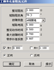 M的值默認情況下有0.9和1.1兩種設置,一般地,M=0.9時,保護應可靠不動作,M=1.1時,保護應可靠動作。設置M=1.2時,微機繼電保護測試儀可以測出保護的動作時間。點擊界面中“提示”按鈕可以獲得更多提示。