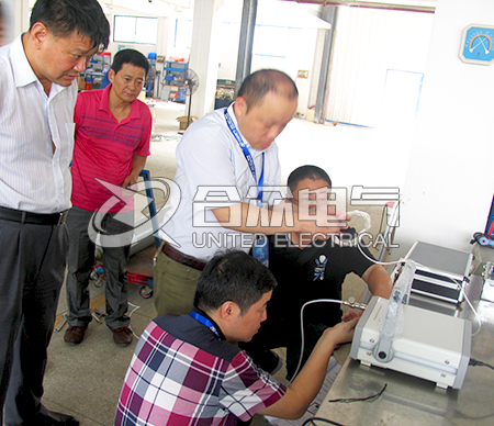 在公司領導和技術人員的陪同下,兩位客戶對合眾電氣的生產車間、質檢室和試驗區先后進行了考察。在質檢室,技術人員對公司產品的質量把關環節進行了詳細的講解。在試驗區,技術人員通過實際操作演示,對公司的產品進行了詳細介紹。最后公司領導還帶領兩位客戶在公司的樣品間對公司生產的其他產品做了簡單介紹。
