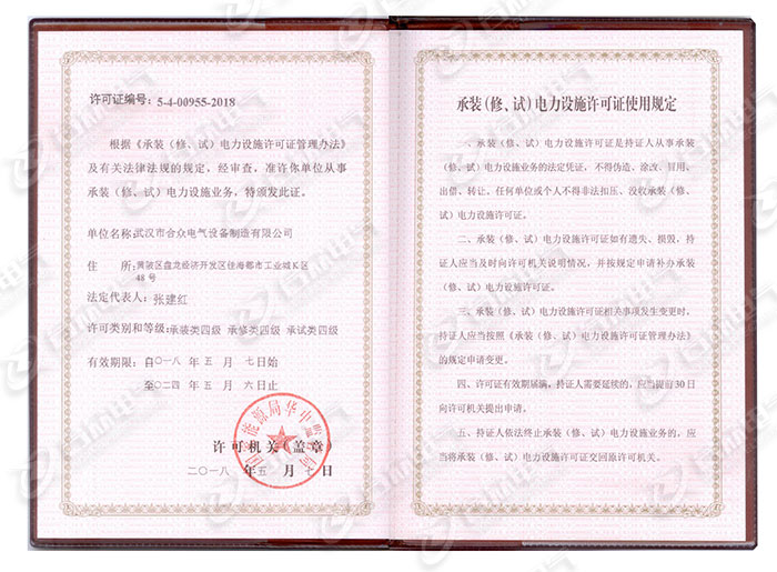 承裝(修,試)電力設(shè)施許可證