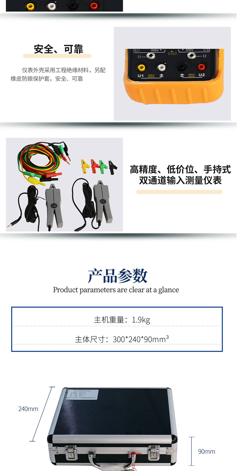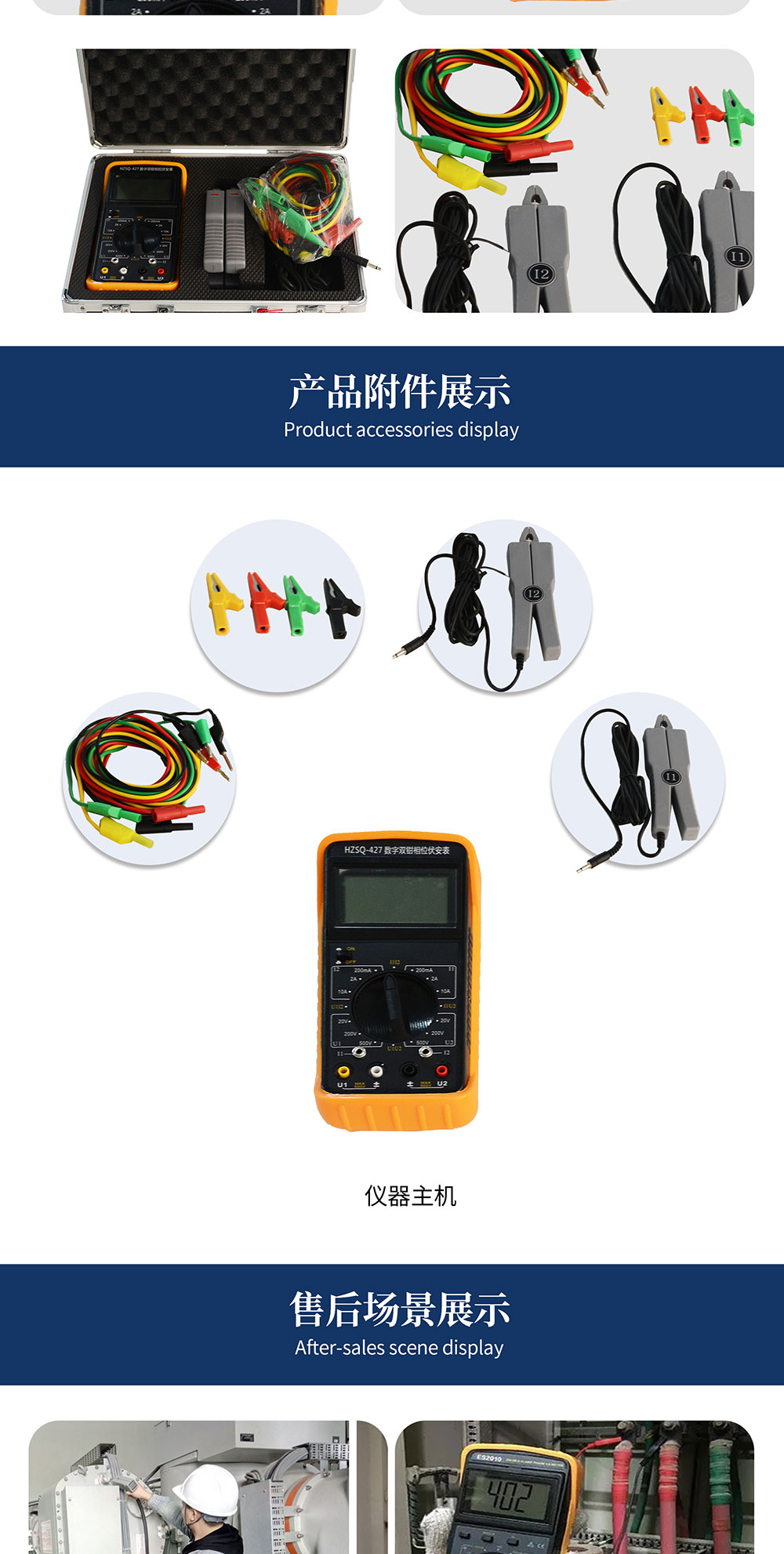 數字雙鉗相位伏安表 HZSQ-427,是專為現場測量電壓、電流及相位而設計的一種高精度、低價位、手持式、雙通道輸入測量儀表。