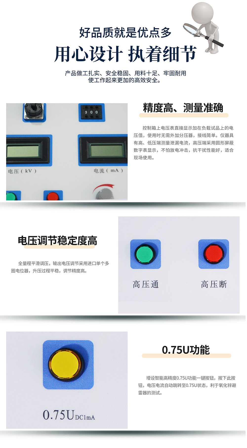 (5)增設高精度0.75UDC1mA功能,為做氧化鋅避雷器測量帶來極大的方便。