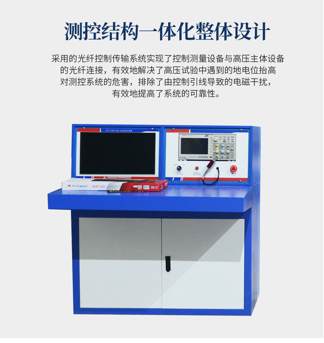 4、采用的光纖控制傳輸系統(tǒng)在國(guó)內(nèi)高壓試驗(yàn)設(shè)備中是創(chuàng)新,它實(shí)現(xiàn)了控制測(cè)量設(shè)備與高壓主體設(shè)備的光纖連接,有效地解決了高壓試驗(yàn)中遇到的地電位抬高對(duì)測(cè)控系統(tǒng)的危害,排除了由控制引線導(dǎo)致的電磁干擾,極大地提高了系統(tǒng)的可靠性。